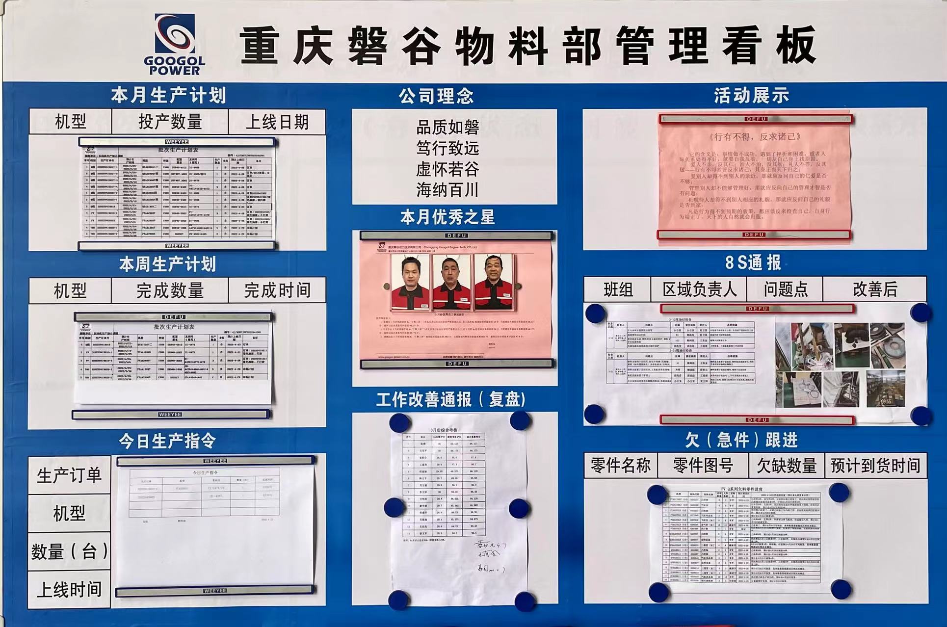 ▲观摩物料部年度工作上墙计划