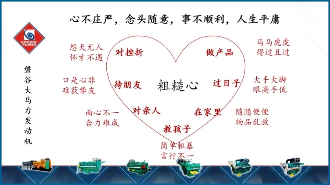 术业有专攻,市场服务主管李朝蓬携研发部张珑瑜、李棚两位工程师及生产部刘小龙部长分别主讲发动机五大系统:即燃油系统、润滑系统、进排气系统、冷却系统、电气系统,两大机构:即曲轴连杆机构和配气机构,以及发动机保养、故障诊断排除等知识。