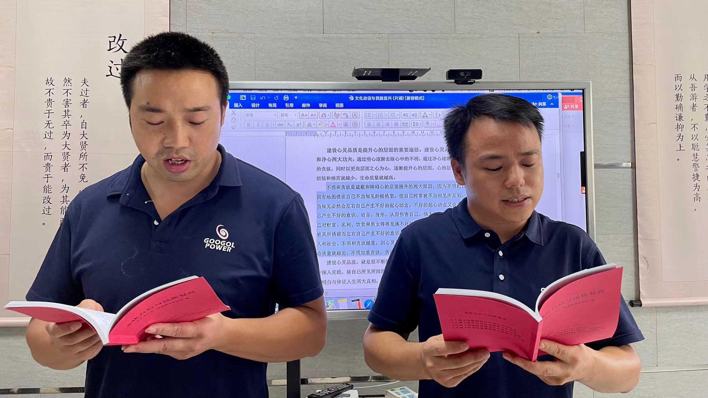窗外蝉噪林逾静、鸟鸣山更幽,窗内书声琅琅更能烘托宁静的夏天。在过往的分享中,大家提到了以自身建设带动家庭、孩子向上发展,七月我们重申是“父母好好学习,孩子天天向上”这样一个主题。同时本次分享会上,集体诵读是我们做出的全新尝试,一方面齐读能凝心聚力,另一方面能让我们在学习中共情。我们以诵读小红书《文化自信与民族复兴》开始整场分享。